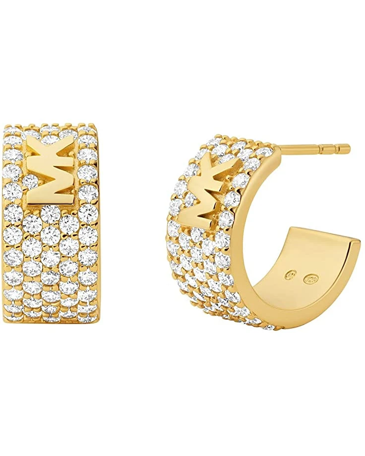 - The Michael Kors® Sterling Silver Pavé Logo Huggie Earrings feature a design that shimmers with handcrafted arrangement of cubic zirconia stones. Pair these elegant branded Huggies with our matching bracelet and ring to create a glamorous statement look.