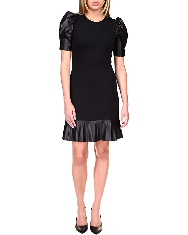 MICHAEL Michael Kors Ponte Leather Mix Ruffle Dress | Dresses